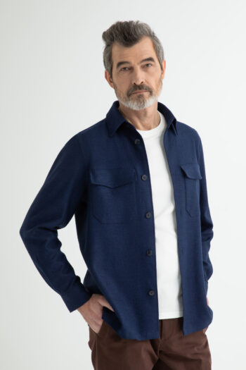 Темно-синій піджак з льону, шовку та вовни