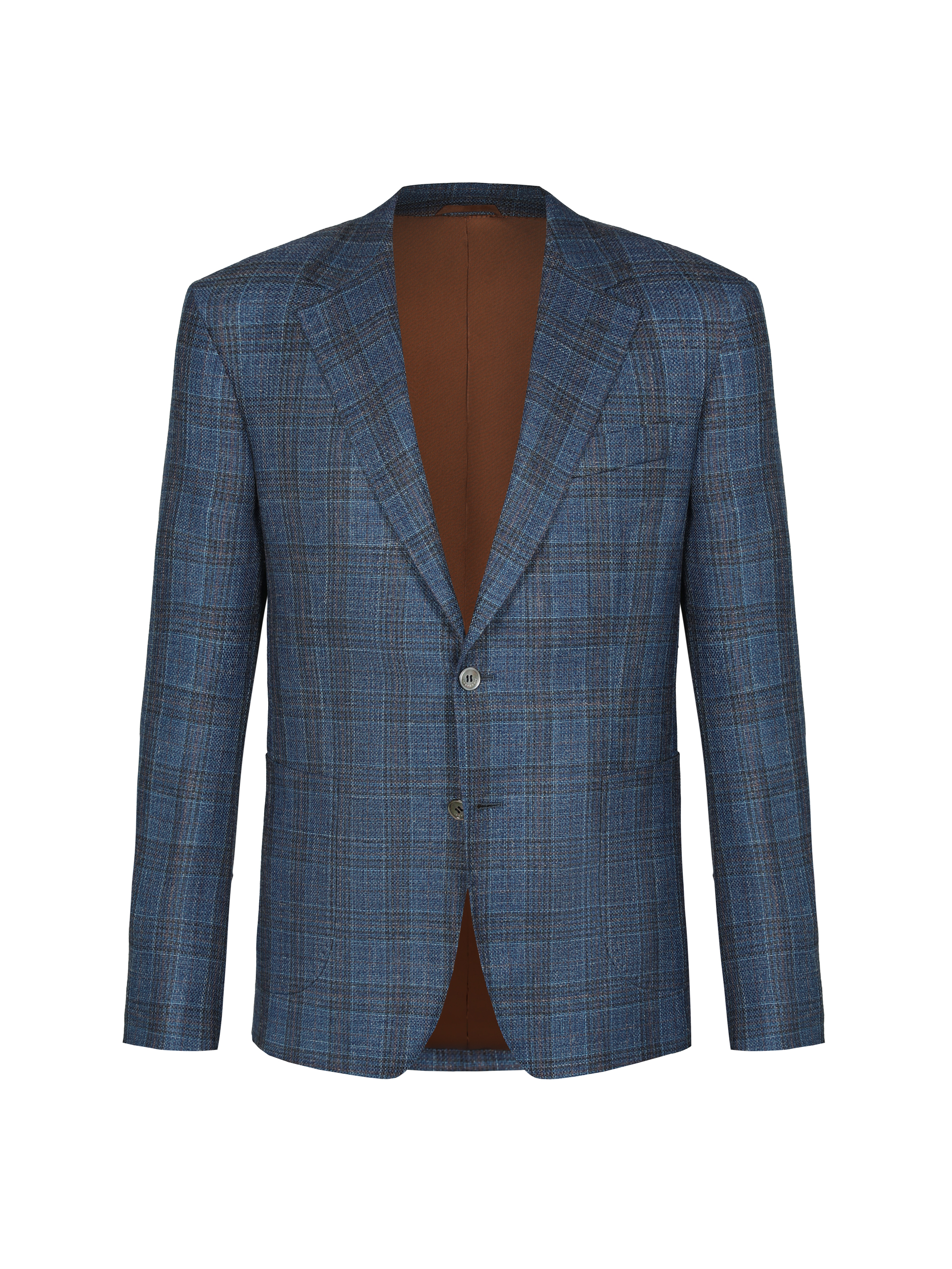 Синій піджак у дрібну клітинку — варіант для тих, хто цінує класичну естетику з характером. Малюнок додає фактурності образу, залишаючись при цьому універсальним для щоденного гардеробу.